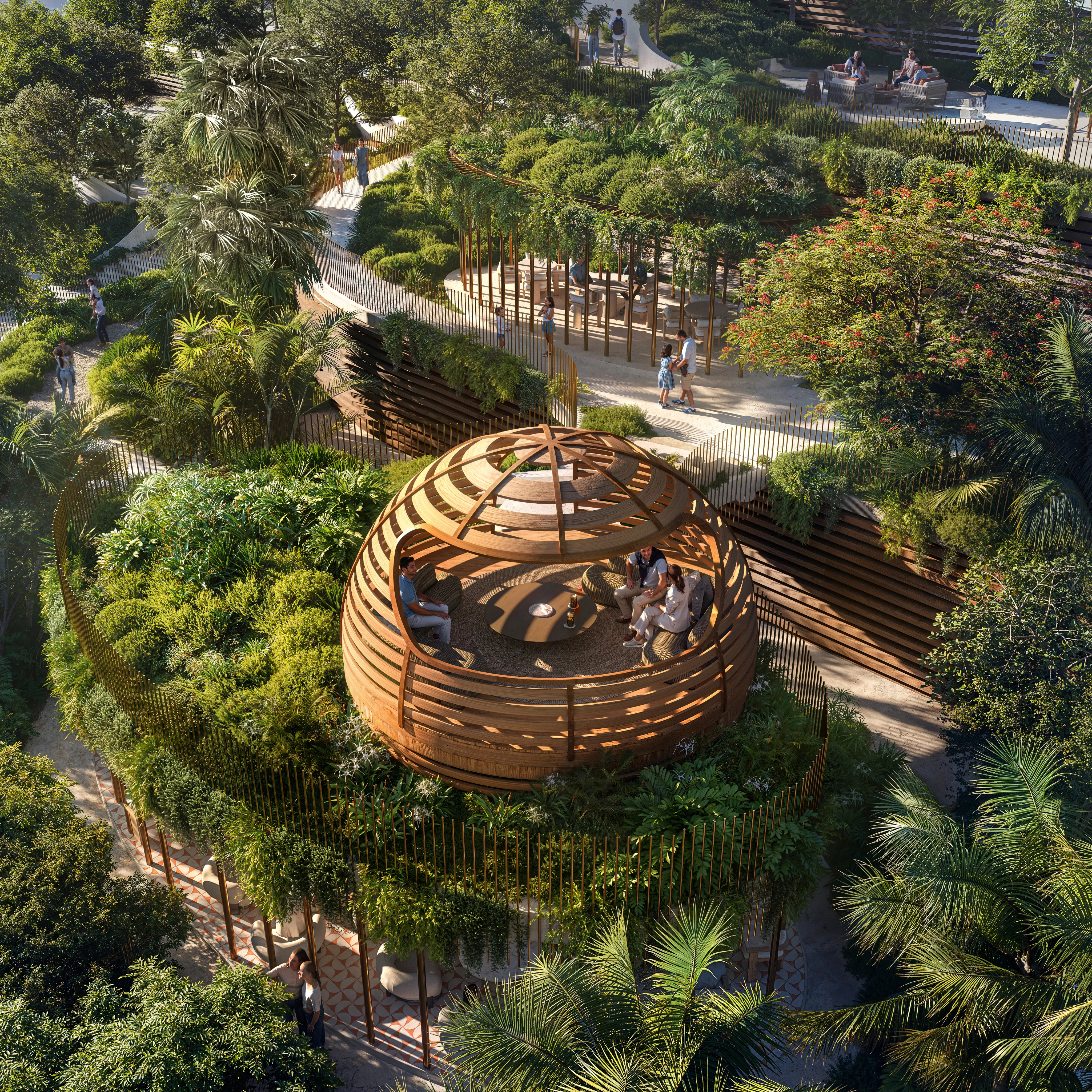 HANGING GARDENS GROW WITHIN THE FLOWING STRUCTURE, WHERE NATURE CLIMBS, RESTS, AND BECOMES PART OF THE HOME.